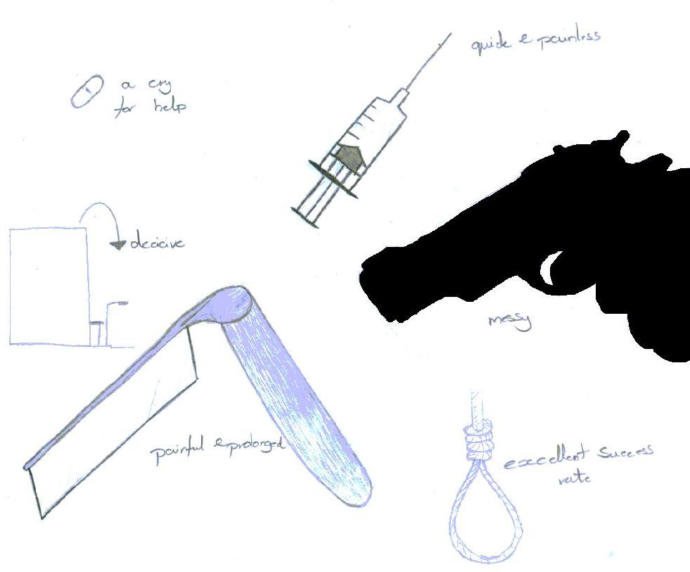The picture on the right shows some pills people use for overdosing another suicide method.