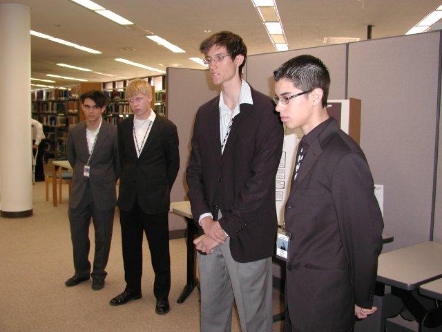 David Murphy, Sudeep Dasari and Colin Redman inspecting sliders: members of the Los Alamos High School Supercomputing Challenge Team